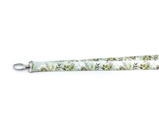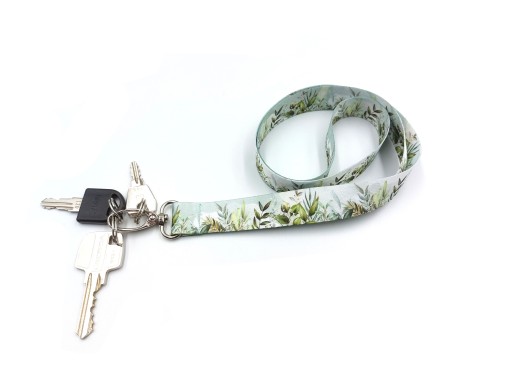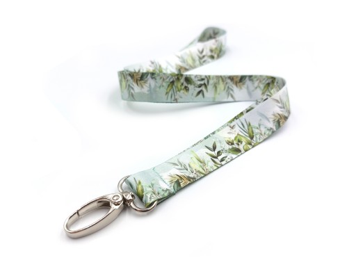 Smycz w delikatny zileony priny o szerokości 20mm z metalowym srebrnym karabińczykiem do kluczy