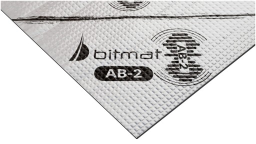 Mata AB-2 wyciszająca wykonana z czystego butylu o grubości 2 mm i niskiej wadze, posiada podwyższoną gęstość i zapewnia najwyższe parametry tłumiące przy tak niskiej masie.