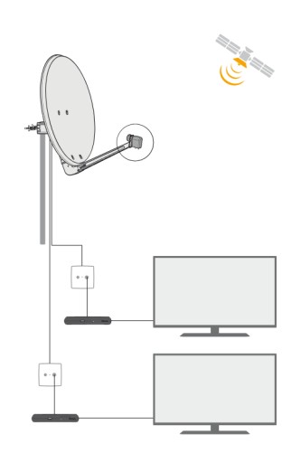 Podwójny konwerter charakteryzuje się dwoma wyjściami zawierającymi pełne pasmo satelitarne z możliwością podłączenia bez pośrednio dwóch odbiorników satelitarnych lub jednego PVR.