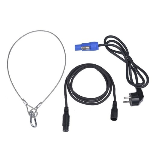 - W zestawie: przewód zasilający, przewód DMX, linka bezpieczeństwa, instrukcja obsługi