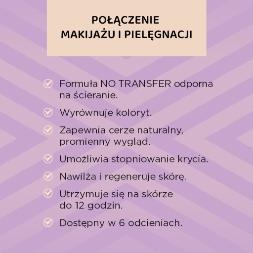 - Nowoczesny, lekki podkład wyrównuje koloryt i zapewnia cerze naturalny, promienny wygląd.