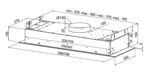 - Zakres prędkości: 4 – stopniowy lub 3 – stopniowy (w zależności od modelu okapu)