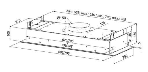 Turbina wewnętrzna działa w 3 lub 4-stopniowym zakresie prędkości, w zależności od modelu okapu.