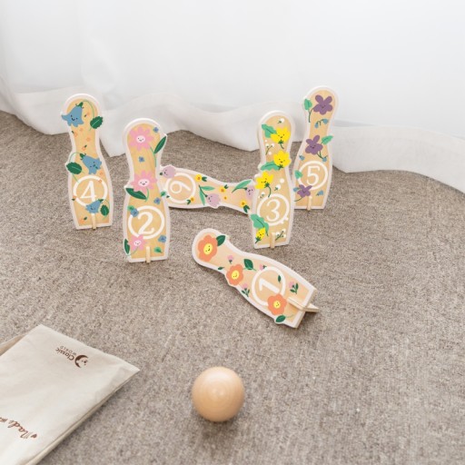 Drewniane Kręgle od marki CLASSIC WORLD to wszystko czego dzieci potrzebują, aby rozwijać zdolności ruchowe i jednocześnie świetnie się, przy tym bawić. Zestaw zawiera 6 kręgli, 1 piłkę oraz worek do przechowywania. Nie musimy przekonywać, że gra w kręgle będzie wspaniałą zabawą dla Twojego maluszka, ale również dostarczy wiele korzyści edukacyjnych. Zabawka rozwija zdolności motoryczne Twojego dziecka poprzez m.in.: bieganie i rzucanie.