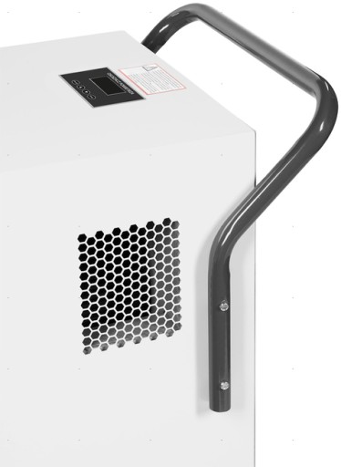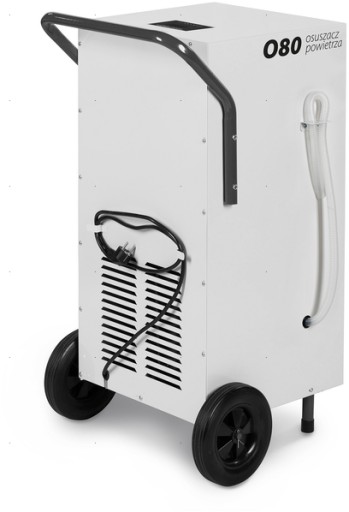 Osuszacz powietrza Ledox O80 wyróżnia się atrakcyjnym, uniwersalnym designem, a jasny kolor sprawia, że mimo swojego budowlanego charakteru i przeznaczenia może być również stosowany w innych miejscach i świetnie wpasuję się swoim wyglądem w otoczenie. Czytelny wyświetlacz podaje wszystkie ważne informacje dotyczące pracy urządzenia jak np. aktualny poziom wilgotności otoczenia, liczbę przepracowanych godzin czy rozpoczęcie automatycznego rozmrażania. Osuszacz posiada zintegrowany higrostat, który pozwala ustawić żądaną wilgotność w zakresie od 30% (min.) do 80% (max.). Po jej osiągnięciu maszyna zatrzyma się automatycznie. Woda może być zbierana do zbiornika o pojemności 6 l lub odprowadzana za pomocą rury spustowej, co pozwala na ciągłą pracę bez przerw na opróżnianie zbiornika. Filtr powietrza został tak umieszczony, aby można było go z łatwością wymontować i delikatnie umyć. Aby wydłużyć żywotność filtra należy go przemyć raz w miesiącu. Dwustopniowy wentylator zapewnia równomierne rozprowadzenie powietrza w całym pomieszczeniu. Dodatkowo urządzenie zostało wyposażone w timer, umożliwiający ustawienie czasu po którym maszyna się wyłączy oraz w automatyczny restart, który w przypadku awarii zasilania umożliwia przywrócenie wszystkich ustawień. Konstrukcja osuszacza z praktycznymi zaczepami na kabel zasilający oraz duże koła i uchwyt ułatwiają transport maszyny.