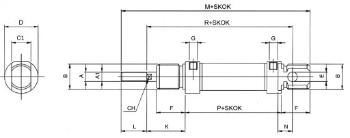 - Kategoria: Siłowniki DNM z jednostronnym tłoczyskiem (ISO6432 dla średnic D8-25)