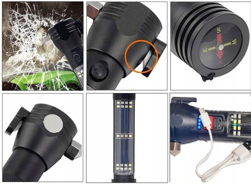 Latarka została wyposażona w młotek do szyb i obcinacz do pasów bezpieczeństwa zapewniając odpowiednią szansę na ucieczkę z niebezpiecznych sytuacji. Jest to niezbędny przedmiot w każdym samochodzie, który będzie niezawodny w chwili wypadku. Umożliwia szybkie uwolnienie się lub innych z pasów oraz łatwe wybicie szyby.