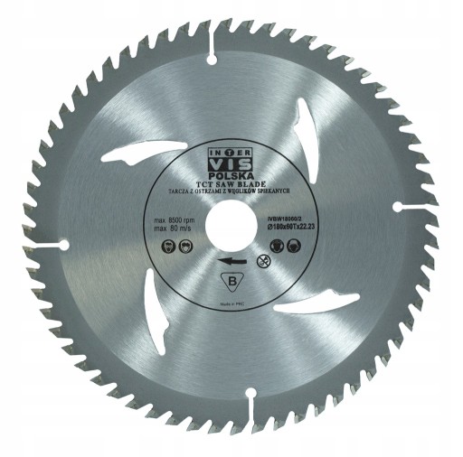 Piła widiowa do drewna 180 mm 60 zębna z otworem 20 mm. Piła tarczowa nadaje się do drewna, płyt wiórowych, płyt pilśniowych, płyt stolarskich, paneli, profili z tworzyw sztucznych. Tarcza do drewna wykonana z wysokogatunkowej stali.