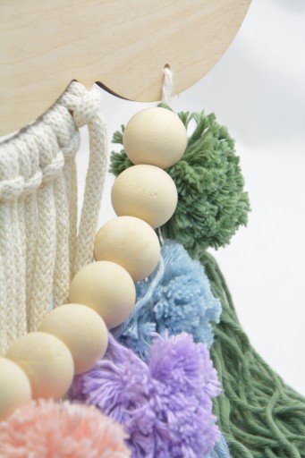 Nube to wisząca dekoracja do pokoju dziecięcego wykonana techniką makramy na drewnianej bazie. Ta cudowna zawieszka w postaci chmurki będzie wspaniałym dodatkiem do pokoju Waszego maluszka. Kolorowe chmurki na ścianach pokoi naszych dzieci, dodają tym miejscom uroku i swego rodzaju magii. Tego typu wiszące dekoracje a według nas w szczególności takie chmurki sprawiają, że przebywając w pokoju z tak udekorowaną ścianą czujemy się beztrosko. Chyba nie znamy nikogo, kto w wieku dziecięcym, lub młodzieńczym nie bujał w obłokach, nie miał swoich małych lub większych marzeń. Chłopców, którzy chcieli zostać policjantem, strażakiem lub dziewczynek, które w większości przypadków chciały być księżniczkami :). Dlaczego mamy więc odmawiać tego naszym pociechom? Sprawmy aby ich pokoje były równie magiczne i wyjątkowe co ich sny i marzenia. Nasza dekoracyjna ścienna chmurka Nube z pewnością Wam w tym pomoże.