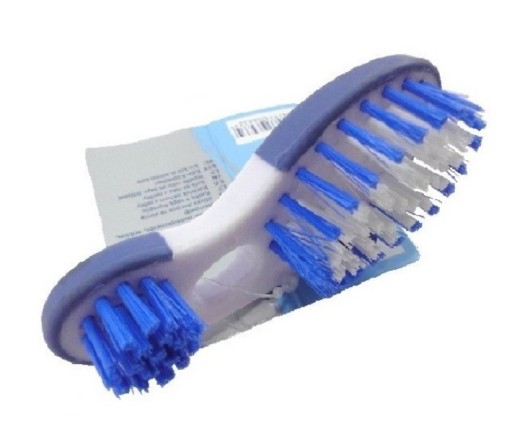 Szczoteczka do czyszczenia rąk i paznokci. Z dwiema powierzchniami czyszczącymi: powierzchnia większa z włosiem o średniej twardości i powierzchnia mała z włosiem twardym. Ergonomiczny kształt, nie wyślizguje się z dłoni. Z otworem do zawieszania.