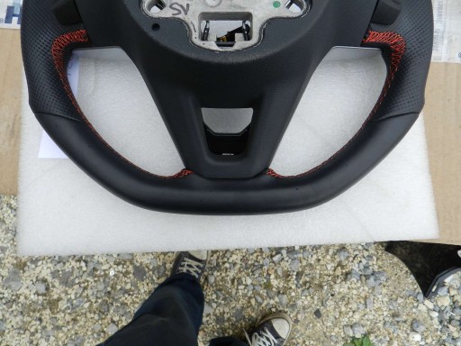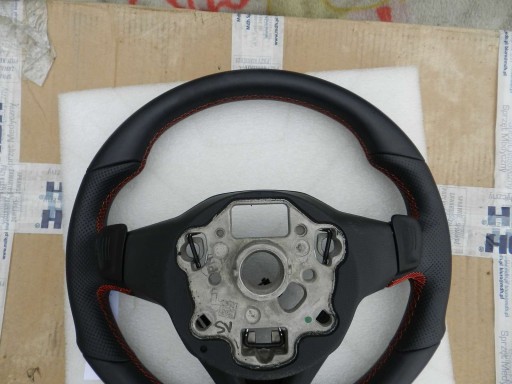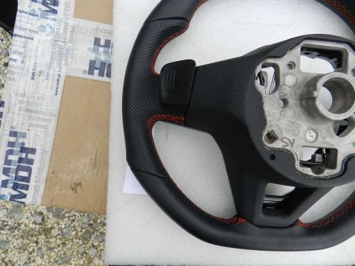 KIEROWNICA ŚCIĘTA PERFOROWANA DOTYK ŁOPATKI PODGRZEWANA CZERWONA NIĆ