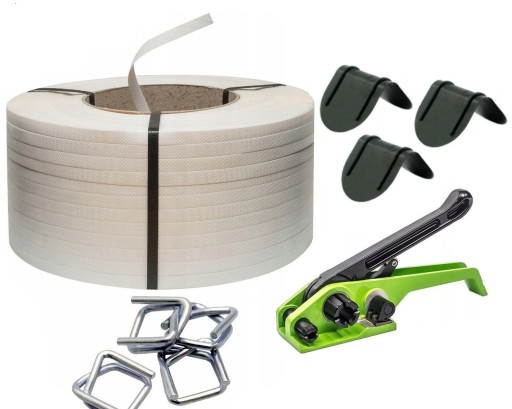 Profesjonalny system pakowania ładunków o wadze do 600,00kg. Wytrzymałość taśmy obliczono dla 5 spięć taśmą. Zestaw pakowy szeroko wykorzystywany w zakładach tartacznych, stolarskich, budowlanych, betoniarskich, gospodarstwach rolnych, sadowniczych i ogrodniczych. Wszędzie tam gdzie istnieje konieczność wiązania materiałów, które wymagają stabilizacji w trakcie ich transportu lub składowania.