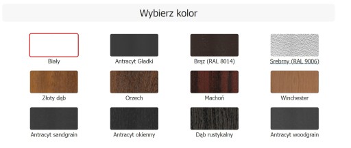 - Kolor standard: biały, antracyt, brąz, srebrny.