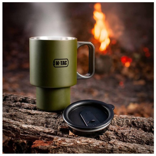 Wyprodukowany przez firmę M-Tac kubek termiczny o pojemności 450 ml. Wykonany został ze stali nierdzewnej w technologii dwuściennej, próżniowej co zapewnia bardzo dobrą izolację termiczną. W efekcie napoje przenoszone w kubku pozostają ciepłe przez długi czas. Z zewnątrz kubek pokryto matową powłoką w kolorze olive.