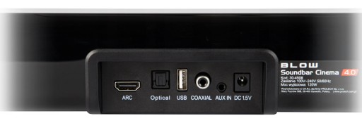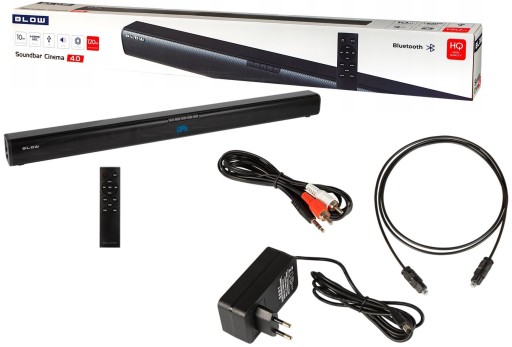 NOWY SOUNDBAR PRZENOŚNY GŁOŚNIK KOLUMNA GŁOŚNIKOWA BLUETOOTH BLOW model CINEMA 4.0 , Pilot , Kabel optyczny 1m , Kabel 2x RCA - 1x Jack 3,5mm , Zasilacz sieciowy 230V , Instrukcja obsługi w języku Polskim , Oryginalne opakowanie z serii SPEAKER