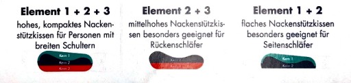 Element 1 + 2 + 3 ▶ wysoka, kompaktowa poduszka pod szyję dla osób o szerokich ramionach.