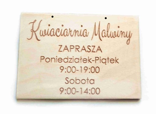 - GRAWER DWUSTRONNY: z jednej strony godziny otwarcia z drugiej strony grawerujemy domyślnie napis ZARAZ WRACAM, możliwy jest grawer innego napisu (wtedy prosimy o informację w wiadomosci do sprzedawcy)