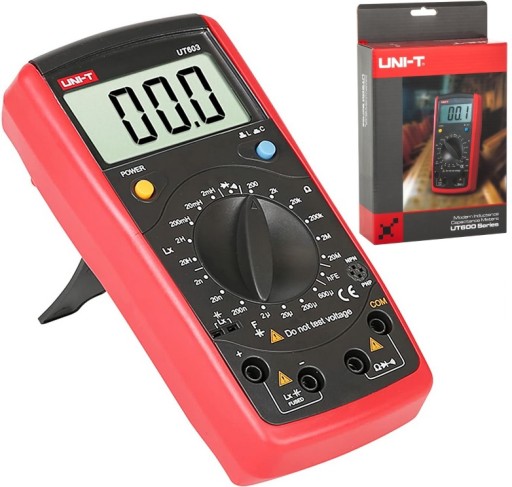 Multimetr cyfrowy elektroniczny UT603 - towar renomowanego producenta aparatury pomiarowej. Miernik umożliwiający pomiar parametrów rezystancji, pojemności oraz indukcyjności. UT600 służą do testowania rezystorów, kondensatorów i cewek. Mogą również służyć do pomiaru parametrów tranzystorów. Z serii mierników UT600 jest to topowy model o najlepszych parametrach.