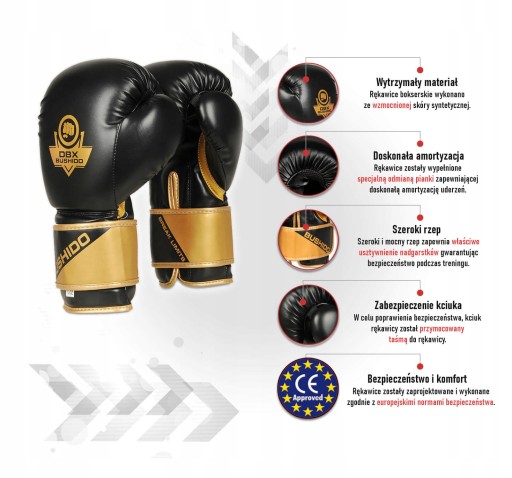BUSHIDO RĘKAWICE BOKSERSKIE TRENINGOWE SPARINGOWE LOGO 12 OZ CZARNE