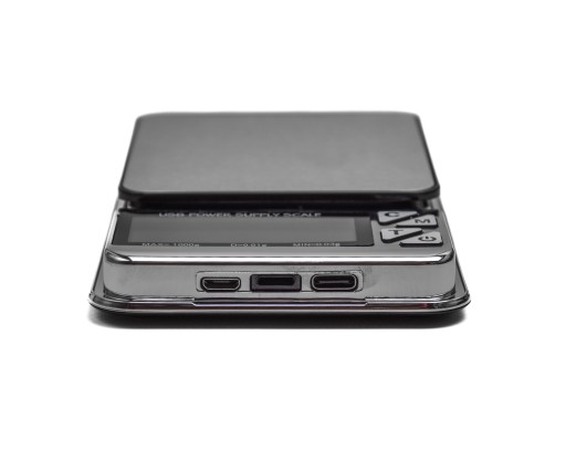 - Wagę można zasilać poprzez 3 wejścia USB MicroUSB USB-C oraz Lighting (kabel nie jest dołączony do zestawu)