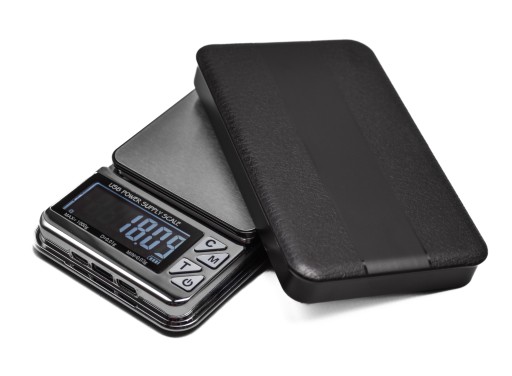 - Waga posiada głęboką zamykaną klapkę która chroni szalkę przed zniszczeniem a dodatkowo może służyć za miseczkę pomocną przy ważeniu