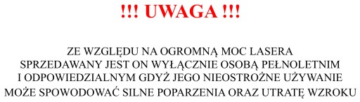 - NIE ISTNIEJĄ MOCNIEJSZE RĘCZNE LASERY - WIĘKSZA MOC WYMAGA CHŁODZENIA ORAZ ZUPEŁNIE INNEGO ZASILANIA CO CZYNI NIEMOŻLIWYM UMIESZCZENIE GO W MAŁEJ RĘCZNEJ OBUDOWIE !!!