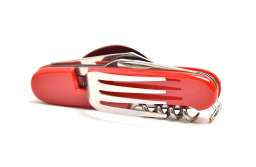 - Obiadowy multi tool zawiera w sobie komplet sztućców szczególnie przydatnych na wyjazdach, wycieczkach, obozach, campingach lub np. w samochodzie.