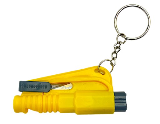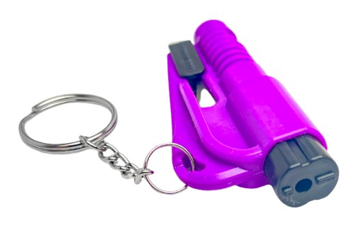 - Narzędzie 3w1 - młotek do rozbijania szyb (hartowanych, nielaminowanych), przecinak pasów bezpieczeństwa, breloczek do kluczyków samochodowych oraz gwizdek.