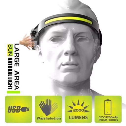 Lekka latarka czołowa COB LED z sensorem ruchu