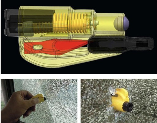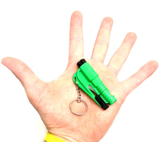 - W sytuacji zagrożenia życia, gdy np. w skutek wypadku zakleszczy się pas bezpieczeństwa lub zablokują drzwi wyjściowe,dzięki brelokowi będziesz mógł szybko przeciąć pas, łatwo wybić szybę w samochodzie oraz wezwać pomoc i zasygnalizować swą obecność korzystając z gwizdka SOS.