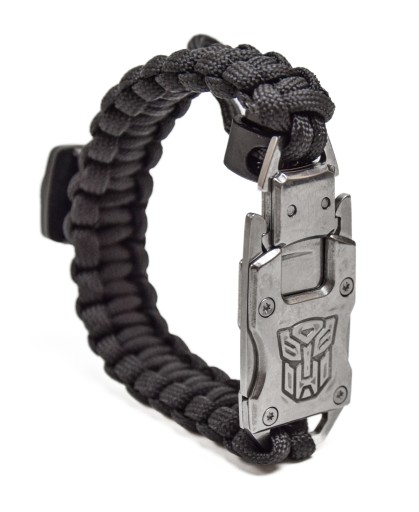 - Zapięcie stanowi metalowa klamra wyposażona w miniaturowy nożyk, na ręce jako bransoletka jest schowany ale gdy się zapnie odwrotnie nożyk do klamry stanowi bardzo poręczny nóż.