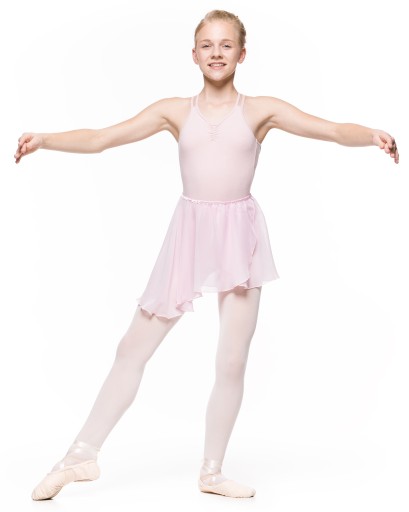 Krótka, zwiewna tuniczka baletowa zakończona estetycznym, zapobiegającym strzępieniu obszyciem, idealnie nadająca się do zajęć tanecznych.