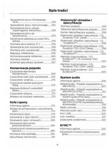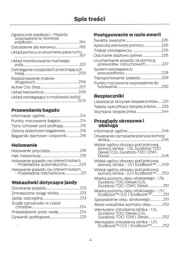 Instrukcja obsługi Forda zawiera wszystkie wersje wyposażenia oraz przydatne informacje jak sprawnie i bezpiecznie użytkować pojazd np.-wskaźniki, lampki kontrolne, otwieranie i zamykanie-oświetlenie i widoczność, fotele, schowki, ogrzewanie, wentylacja, klimatyzacja-jazda, wskazówki eksploatacyjne, konserwacja pojazdu-poziomy płynów, sprawdzanie i uzupełnianie, czynności awaryjne, wymiana kół, bezpieczniki, wymiana żarówek-dane techniczne... oraz wiele wiele innych rzeczy, które dają poczucie bezpieczeństwa oraz komfortu podróżującym. Polskie prawo nakłada na sprzedawcę obowiązek dołączania instrukcji obsługi auta w języku polskim do . Instrukcja obsługi auta jest nowa i w języku polskim.
