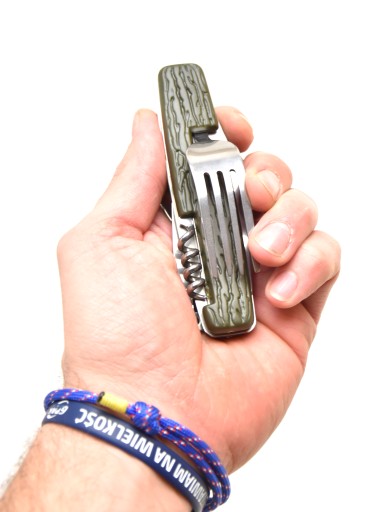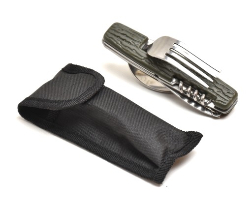 - nóż, otwieracz do butelek, widelec łyżka, korkociąg zintegrowany w jednym poręcznym scyzoryku, który zawsze możesz mieć przy sobie.