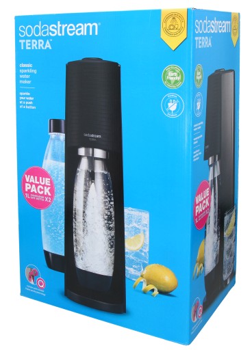 Ekspres SodaStream Terra o czarnym, matowym wykończeniu to łatwy w obsłudze i niezwykle elegancki ekspres do gazowania wody, który w kilka sekund zmieni zwykłą wodę w przepyszny bąbelkowy napój. Postaw na bycie eko. Postaw na SodaStream! Wyeliminuj nawet 1769 butelek plastikowych.* Zostań Streamerem i przyczyń się do eliminacji 78 miliardów plastikowych butelek jednorazowego użytku do 2025 roku. Do dzieła!