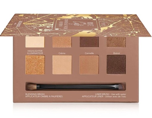 Paleta Cieni Bourjois Rue Du Cafe Chocolat Nude zawiera bazę pod cienie, 6 cieni do powiek i rozświetlacz. Dodatkowo najciemniejszy cień można wykorzystać jako eyeliner. W stylowym, eleganckim opakowaniu umieszczony został dwustronny aplikator, który z jednej strony ma płaski pędzelek do aplikacji i blendowania cieni, a z drugiej skośnie ścięty aplikator do eyelinera. Cienie mają bogatą pigmentację oraz lekką, aksamitną konsystencję, którą można stosować na mokro lub na sucho, aby uzyskać naturalny lub bardziej intensywny wygląd.