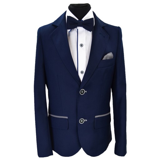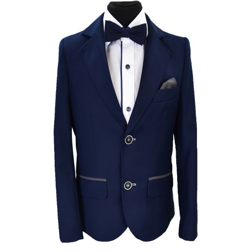 Garnitur dla chłopca od Lorento, dziecięcy, w kolorze granatowym, klasyczny i elegancki, bardzo twarzowy, doskonały do Pierwszej Komunii jaki i inne uroczystości szkolne lub rodzinne, Lorento to zespół który zna się na garniturach, szyjemy od wielu lat, jeśli chodzi o elegancką odzież to jesteś w dobrym miejscu, zapraszamy na nasze aukcje po koszule i dodatki.