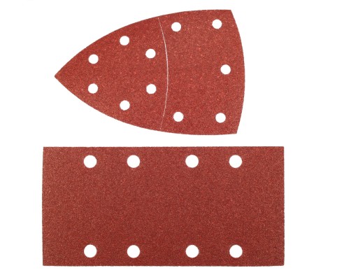- dwuczęściowa płyta w kształcie żelazka - tylna część płyty szlifierskiej pozostaje na pozycji, natomiast ostro zakończony koniec w kształcie delty jest zamocowany elastycznie. Umożliwia szlifowanie średnich i większych powierzchni płaskich oraz narożników i krawędzi.