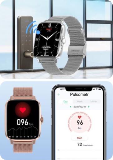 - Wyposażony w: głośnik HD, mikrofon HD, wibracja, pulsometr, krokomierz, ciśnieniomierz, potencjometr do zmiany tarcz