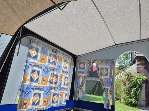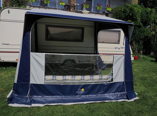 PRZEDSIONEK W BARDZO DOBRYM STANIE Z KOMPLETNYM ORYGINALNYM ALUMIONIOWYM STELAŻEM ZE STALOWYMI ŁĄCZENIAMI ( STELAŻ ANEKSU STALOWY ), KOMPLETEM ORYGINALNYCH ZASŁON, ORYGINALNYMI OSŁONĄ PRZECIWWIETRZNĄ NA DÓŁ PRZYCZEPY/FARTUCHEM I OSŁONĄ NA KOŁO, PRZYSSAWKAMI DO BEZINWAZYJNEGO MONTAŻU, PODWÓJNYMI FARTUCHAMI.