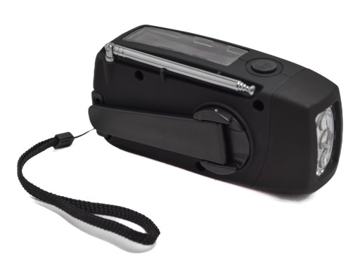 - W radiu znajdziemy mocną 3x LED latarkę którą naładujemy tak jak radio poprzez Korbkę, panel słoneczny czy kabel microUSB (dołączony do zestawu.