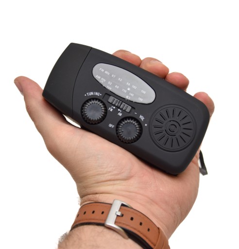 - Radio jest małe zmieści się w kieszeni a może nam uratować życie, dzięki wbudowanej latarce oświetlimy drogę w ciemności, gdy rozładuje się telefon a musimy pilnie zadzwonić po pomoc to radio naładuje nam telefon.