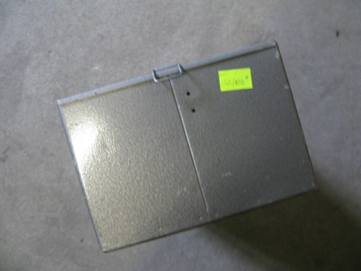 Opis: stan db,u żywana, wykonanie z metalu, wnętrze z przegrodą, wym. wewnętrzne41x18x12,5cm