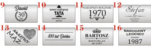 Poniżej przedstawiamy przykładowe wzory tabliczek, po zakupie prosimy podać nr wzoru oraz dane do podmienienia.