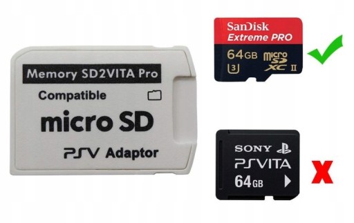 - Z adaptera korzystamy poprzez slot gier w konsoli PS Vita. Obsługa kart MicroSD aż do 256GB.