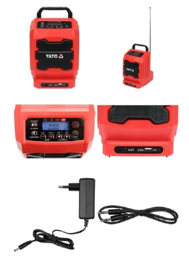 Radio zasilane jest akumulatorem systemu 18V lub prądem z gniazdka sieciowego (adapter dołączony w komplecie).