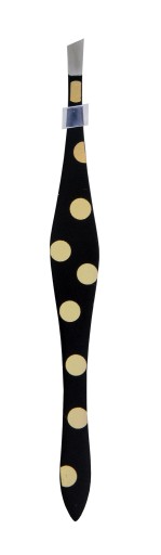Profilowana, poręczna i komfortowa w użyciu pęseta skośna z modnym motywem w złote, pięknie mieniące się kropeczki. Dzięki specjalnemu wykończeniu doskonale leży w dłoni i chwyci nawet najmniejsze włoski.