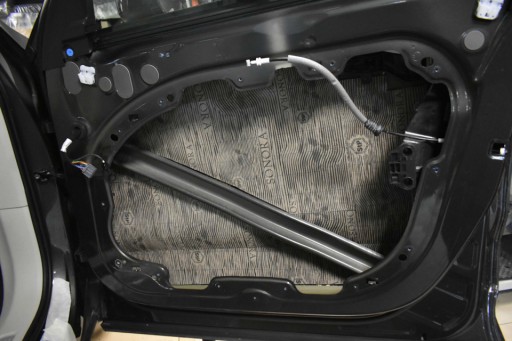 Звукоизоляционный мат StP Sonora толщиной 5,2 мм BUTYL FOAM придает жесткость листовому металлу и подавляет шум.