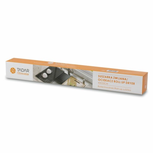 Suszarka do naczyń Tadar Roll Up 43 x 33 cm jest bardzo praktycznym rozwiązaniem do domowej kuchni. Gdy nie będzie potrzebna, przechowasz ją bez trudu i niewielkim kosztem miejsca, ponieważ ma zwijalną konstrukcję. Budowa modelu łączy metalowe pręty i wykończenie z elastycznego tworzywa. Na co dzień zyskasz więcej miejsca do odkładania mokrych naczyń na czas suszenia. Nie zarysujesz zlewu, opierając model na jego brzegach i ułożysz go stabilnie nad komorą. Upewnisz się również, że ociekanie będzie sprawne (zarówno naczyń jak i umytych owoców i warzyw). Łatwo utrzymasz go w czystości, gdyż ma prostą budowę. Charakteryzuje go również dużą odporność na działanie wilgoci.