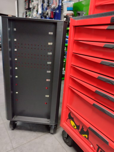 Podstawowa, ekonomiczna szafka narzędziowa bez wyposażenia, wykonana z dobrej stali, z 7 szufladami na łożyskach kulowych oraz płaskim, stalowym blatem z gumową nakładką. Posiada zamek z kluczem centralnym.